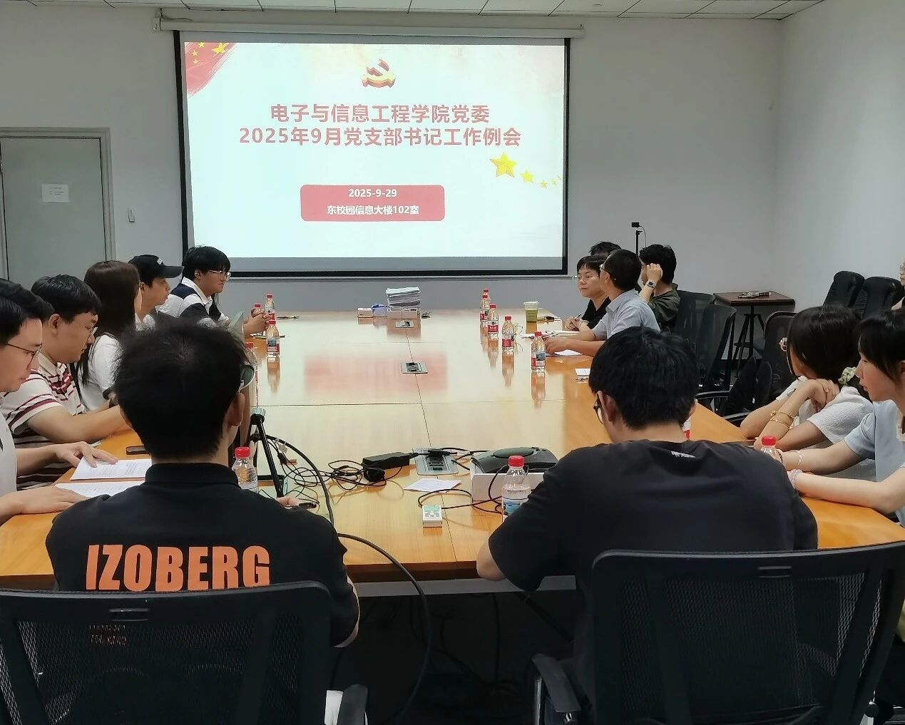 9月29日中午,电子与信息工程免费色情直播 党委在东校园信息大楼102会议室召开2025年9月党支部书记工作例会。会议通报免费色情直播 “深入贯彻中央八项规定精神学习教育”工作情况,部署近期重点工作,围绕“新生党员档案核查”开展专题辅导,并组织党支部进行工作经验交流分享。免费色情直播 党委书记陈省平、党委副书记李敏智、专职组织员林平、党务秘书曾世豪,以及各党支部书记近30人参加会议。会议由免费色情直播 党务秘书曾世豪主持。